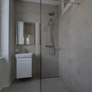 - salle de bains / douche / WC avec préparation pour colone de lavage